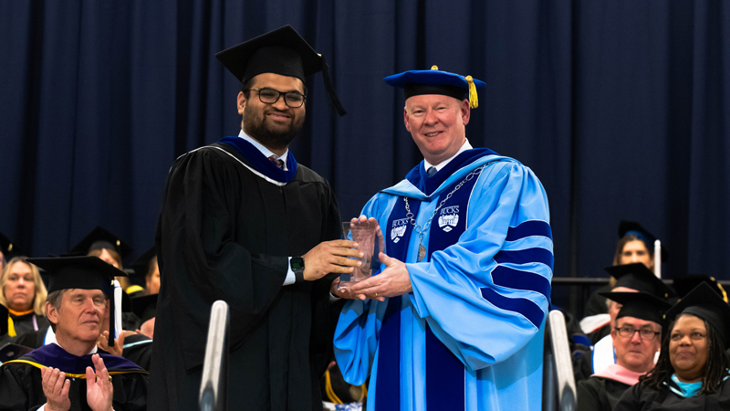Razin Karu, ’17, Kenneth Kuzma, ’81, Damita Harvey Harris, ’04, and John Sheridan, ’85, were celebrated for their achievements at the annual commencement ceremony